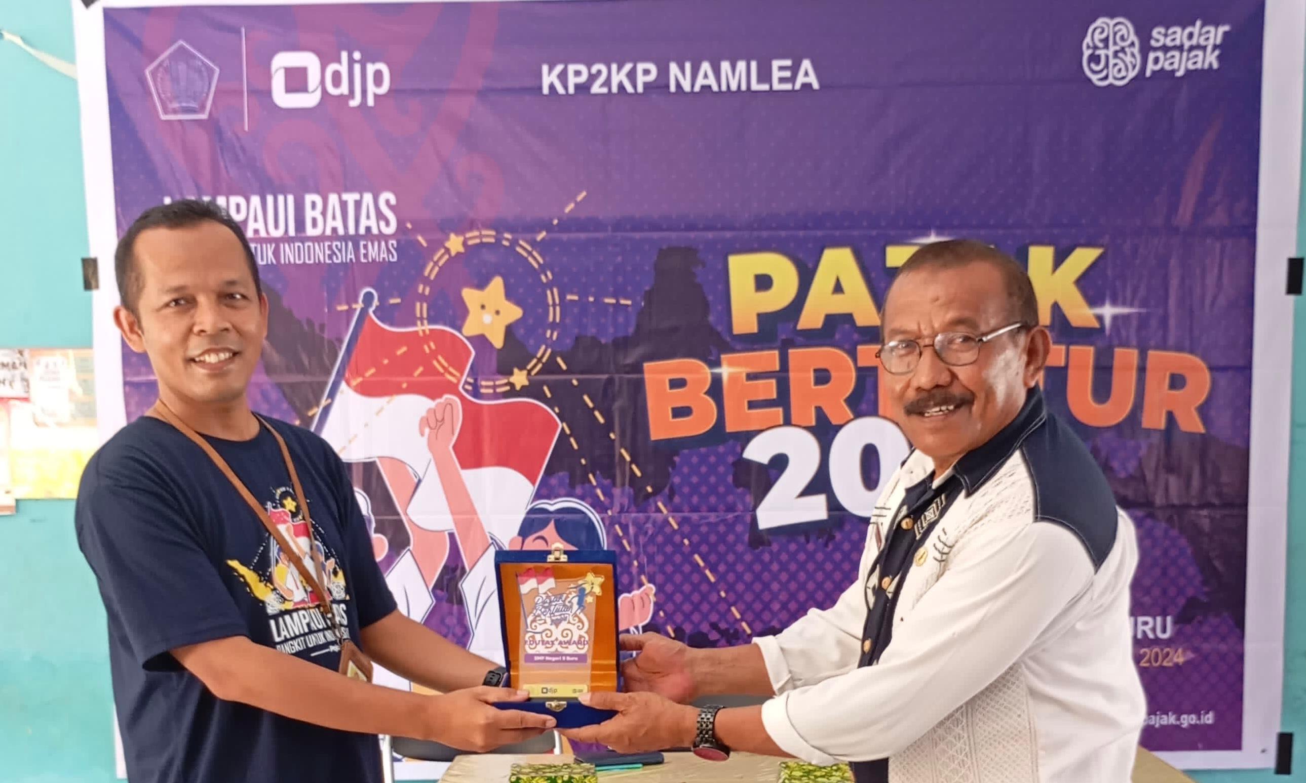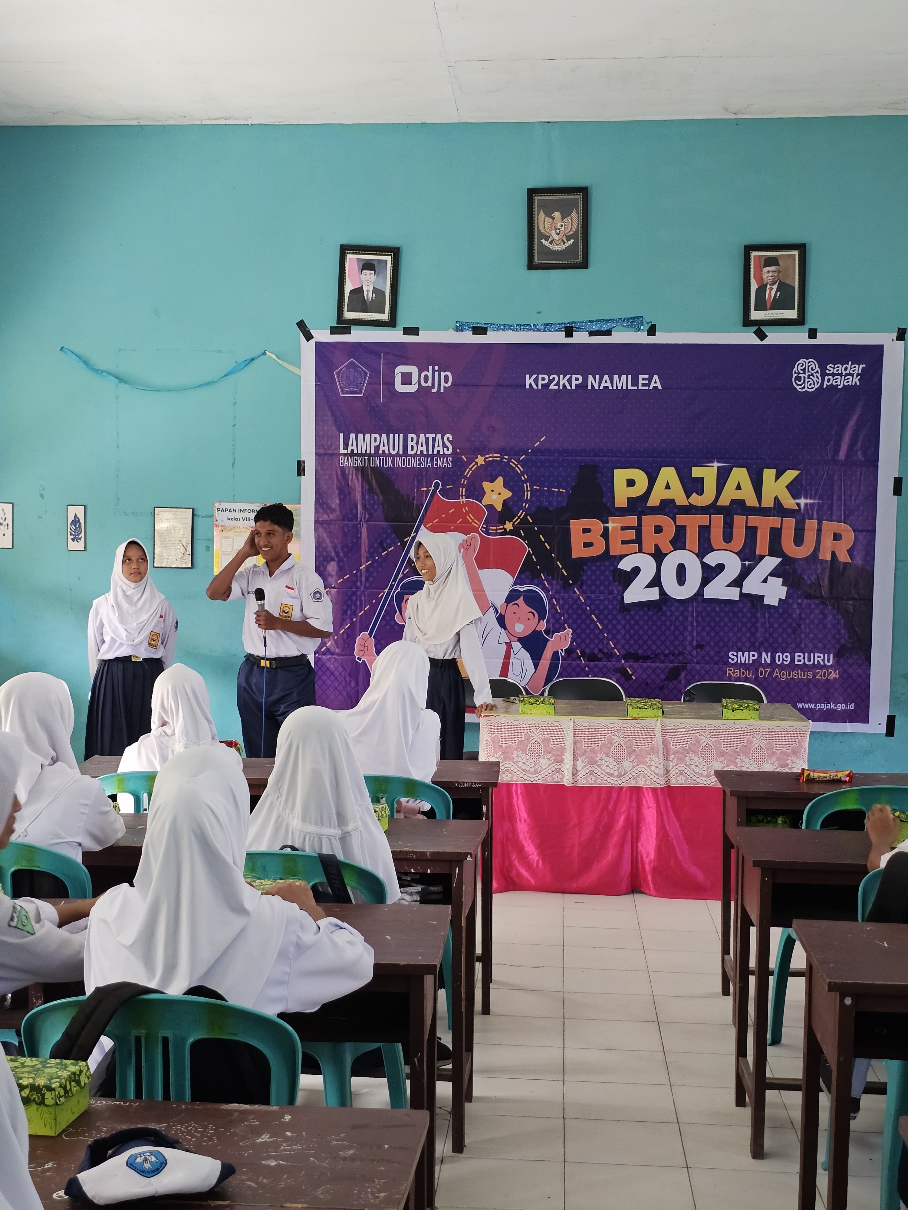 Kantor Pelayanan, Penyuluhan, dan Konsultasi Perpajakan (KP2KP) Namlea menyelenggarakan kegiatan Pajak Bertutur 2024 di SMP Negeri 9 Buru Kecamatan Namlea, Kabupaten Buru, Maluku (Rabu, 7/8). Dengan tema 'Lampaui Batas, Bangkit untuk Indonesia Emas,' Pajak Bertutur 2024 tersebut diikuti oleh 30 peserta.