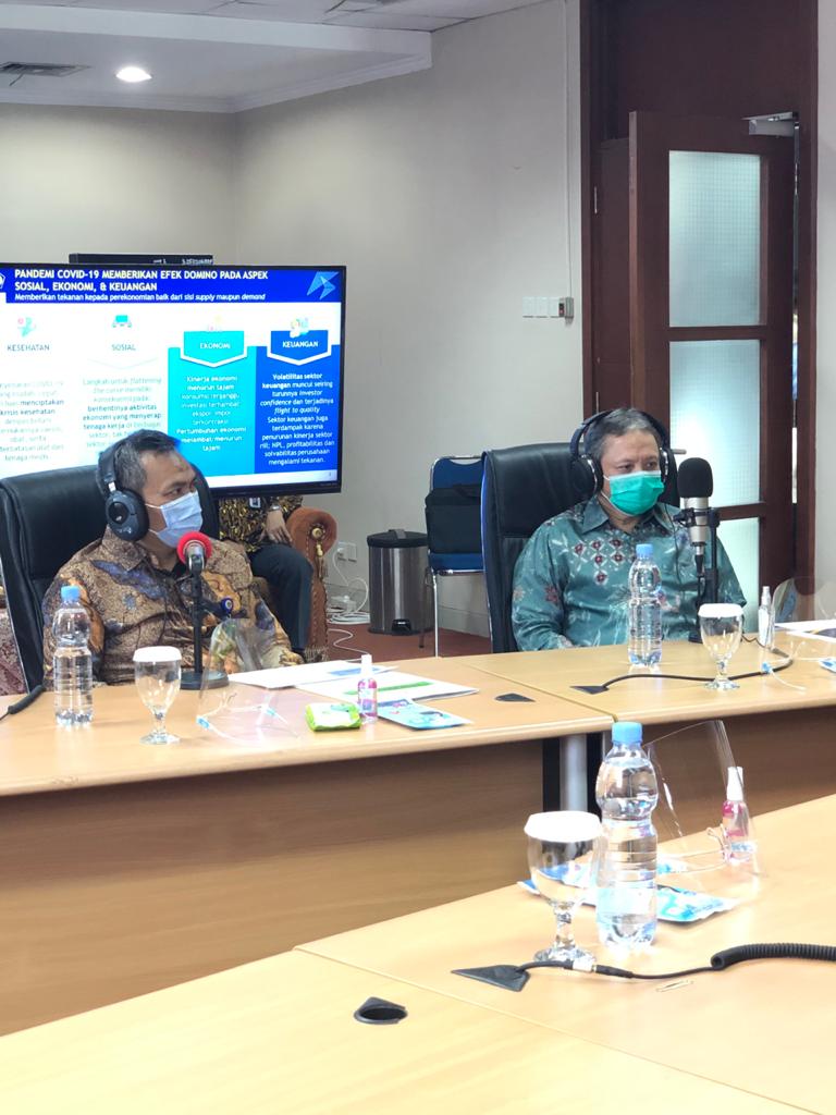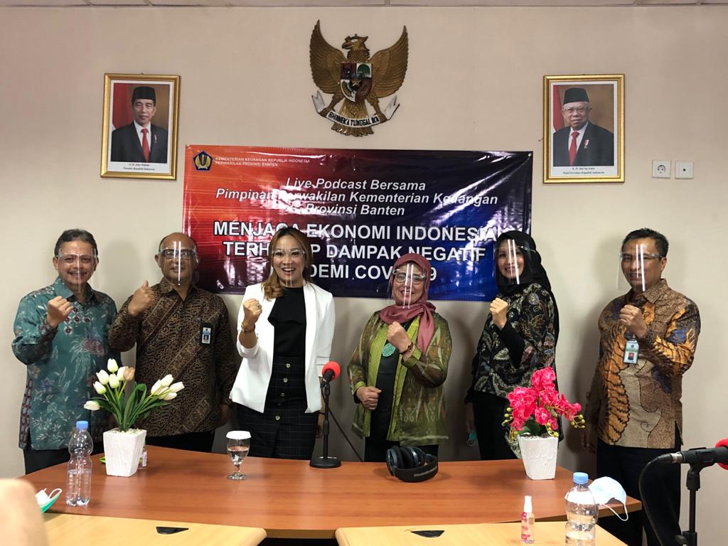 Jajaran pimpinan perwakilan Kementerian Keuangan di Provinsi Banten melalui media siniar (podcast) duduk bareng membahas tema Menjaga Ekonomi Indonesia Terhadap Dampak Negatif Pandemi Covid-19 di Kantor Wilayah Direktorat Jenderal Kekayaan Negara Banten (Rabu, 23/9).
