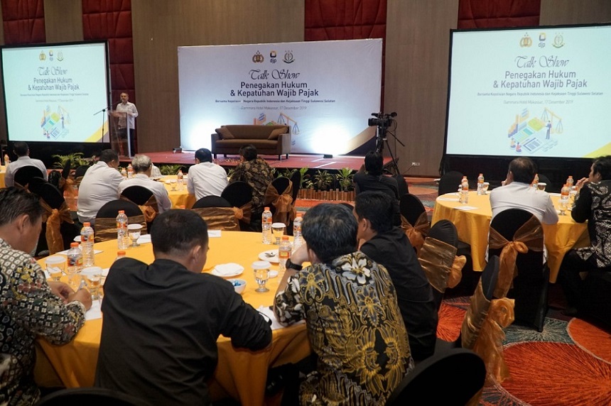 Kanwil DJP Sulawesi Selatan, Barat, dan Tenggara (Sulselbartra) mengadakan Talkshow Perpajakan dengan tajuk 'Penegakan Hukum dan Kepatuhan Wajib Pajak' (Selasa, 17/12). Dalam acara yang dilangsungkan di Hotel Gammara Makassar ini, hadir perwakilan dari Polrestabes Makassar dan Kejaksaan Tinggi Sulsel selaku mitra kerja.
