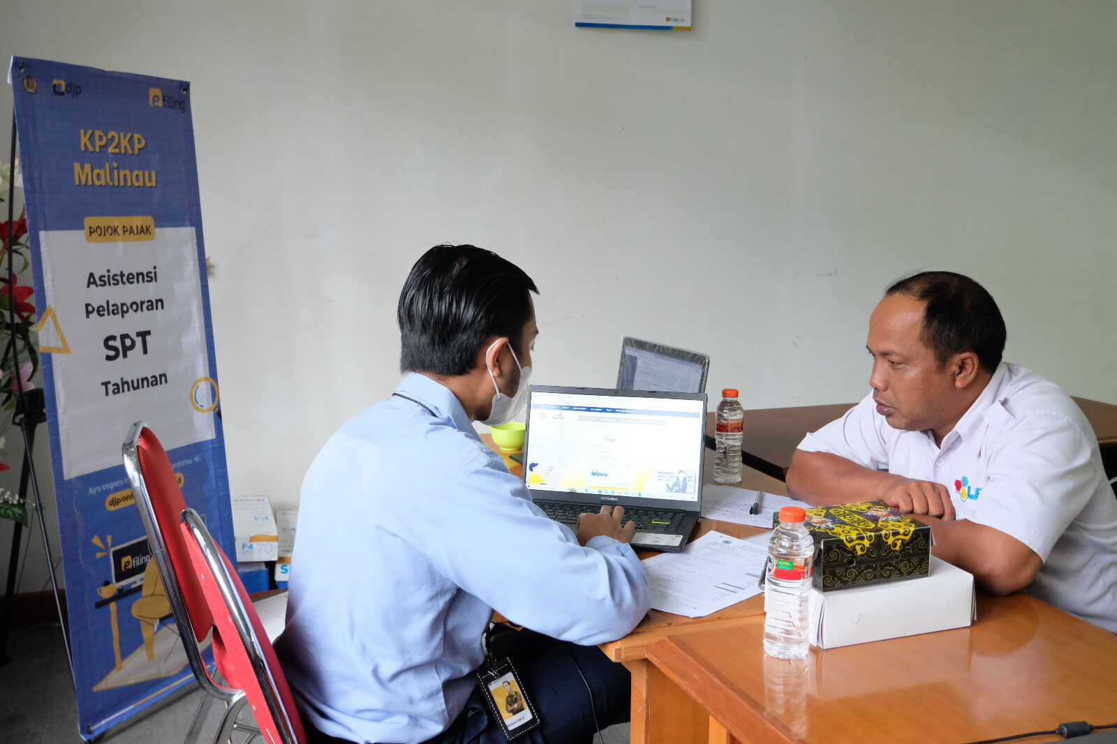 Kantor Pelayanan Penyuluhan dan Konsultasi Perpajakan (KP2KP) Malinau menggelar asistensi pelaporan Surat Pemberitahuan (SPT) di Kantor Kesektariatan DPRD Kabupaten Malinau, Jalan Pusat Pemerintahan, Kabupaten Malinau (Rabu, 01/02).