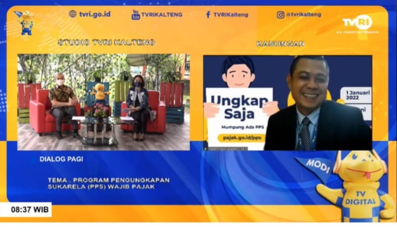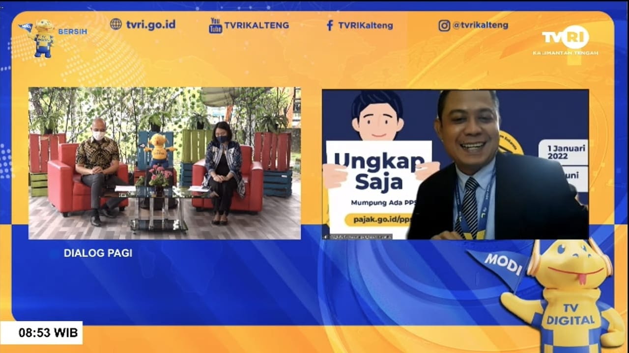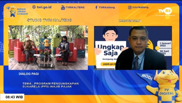 Kantor Pelayanan, Penyuluhan, dan Konsultasi Perpajakan (KP2KP) Kasongan melaksanakan kegiatan sosialisasi Program Pengungkapan Sukarela (PPS) wajib pajak dalam acara Selamat Pagi Tambun Bungai secara langsung bersama TVRI Kalimantan Tengah (Kalteng) (Rabu, 2/3).