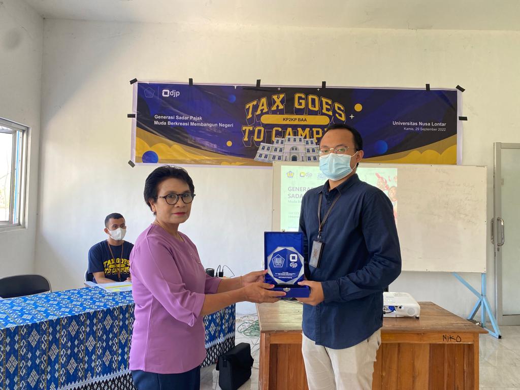 Kantor Pelayanan, Penyuluhan, dan Konsultasi Perpajakan (KP2KP) Baa mengadakan Tax Goes To Campus (TGTC) di Universitas Nusa Lontar (Kamis, 29/9). Acara diselenggarakan secara tatap muka dan diikuti oleh 30 mahasiswa Program Studi Manajemen. Turut hadir bersama mahasiswa yaitu Jenny Irmajati Tanesib selaku dosen pengampu.
