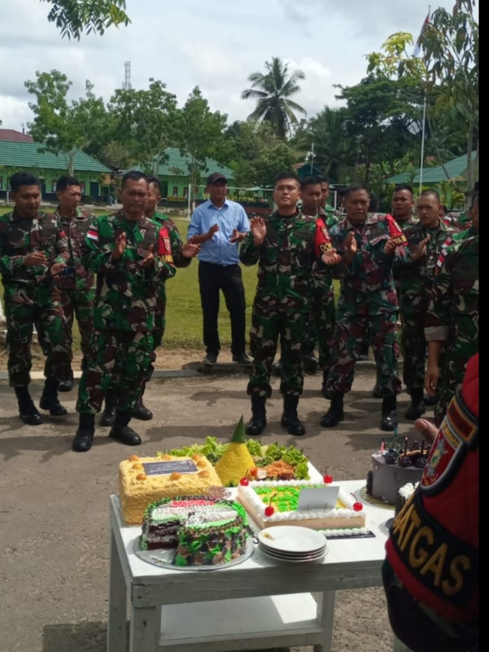 Bupati Nunukan Asmin Laura bersama Kepala Kantor Pelayanan, Penyuluhan dan Konsultasi Perpajakan (KP2KP) Nunukan Ari Saptono dan instansi pemerintah pusat dan daerah lainnya di Kabupaten Nunukan menghadiri syukuran Hari Ulang Tahun (HUT) ke-77 Tentara Nasional Indonesia (TNI) pada tahun 2022 di Asrama Satuan Tugas Pengamanan Perbatasan (Satgas Pamtas) di Kab. Nunukan (Rabu, 05/10).