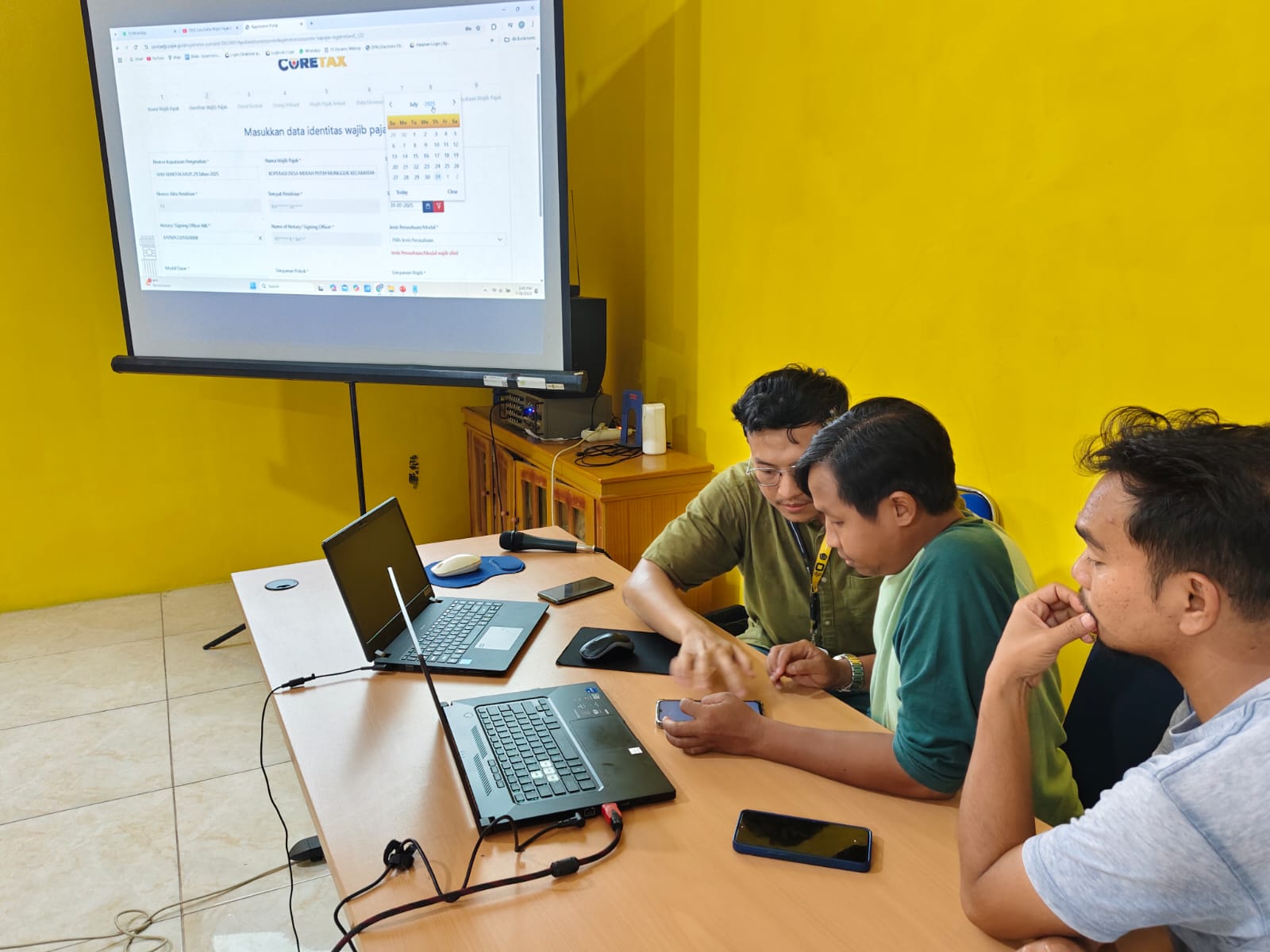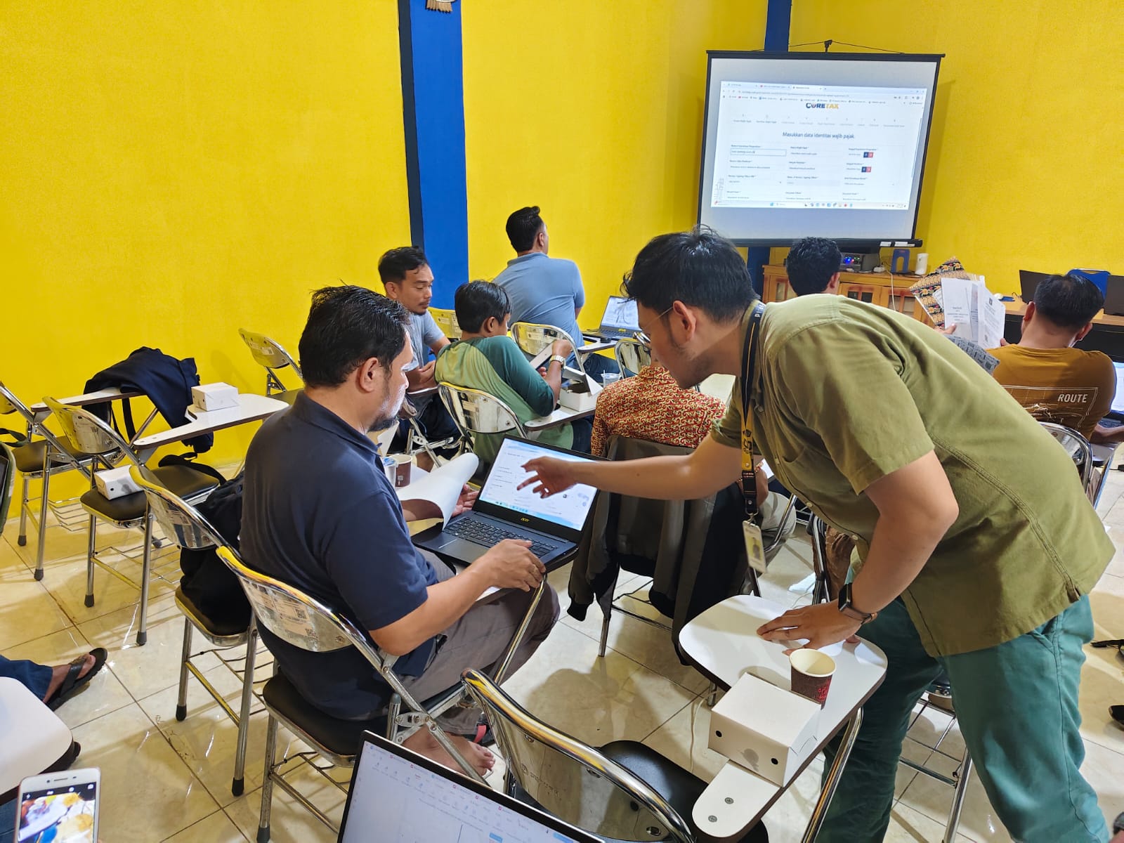 Sesi berikutnya adalah pendaftaran NPWP Koperasi Merah Putih secara online bersama-sama dimana peserta sebelumnya telah mempersiapkan dokumen persyaratan dalam bentuk softcopy dan mempersiapkan laptop dan ponsel yang telah diisi pulsa.
