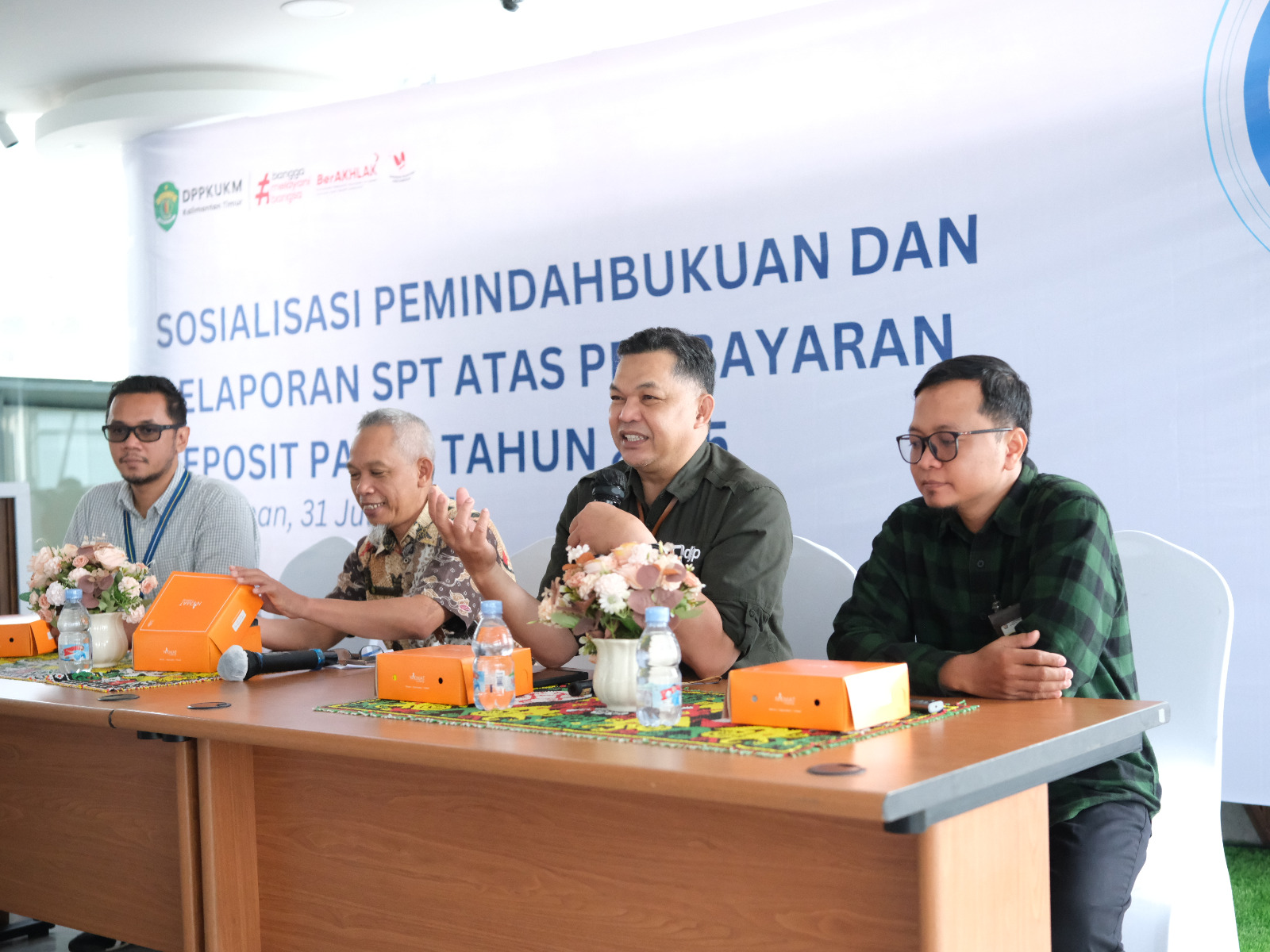 Kantor Wilayah Direktorat Jenderal Pajak Kalimantan Timur dan Utara (Kanwil DJP Kaltimtara) menghadiri undangan dari Dinas Perindustrian, Perdagangan, Koperasi, dan Usaha Kecil Menengah Provinsi Kalimantan Timur (DPPKUKM Provinsi Kaltim) sebagai narasumber dalam kegiatan Sosialisasi Pemindahbukuan dan Pelaporan SPT atas Pembayaran Deposit Pajak Tahun 2025 yang dilaksanakan di Galeri UMKM Kota Balikpapan, Kota Balikpapan (Kamis, 31/7).