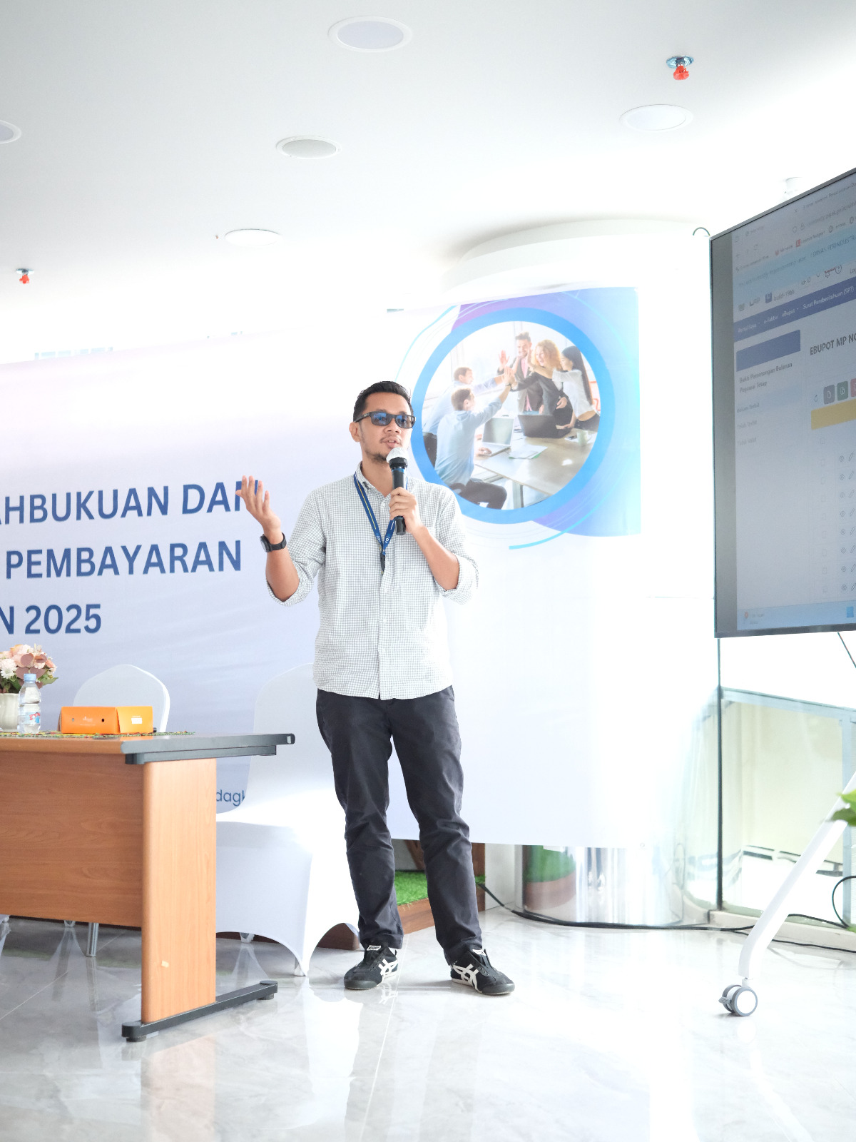 Tim Penyuluh Pajak Kanwil DJP Kaltimtara, Sanis Raharjo Gusti, melanjutkan kegiatan sosialisasi dengan mengajak seluruh peserta praktik langsung mengenai pelaporan SPT Masa melalui Coretax DJP dimulai dari pembuatan bukti potong, pembuatan kode billing, dan pelaporan SPT masa.