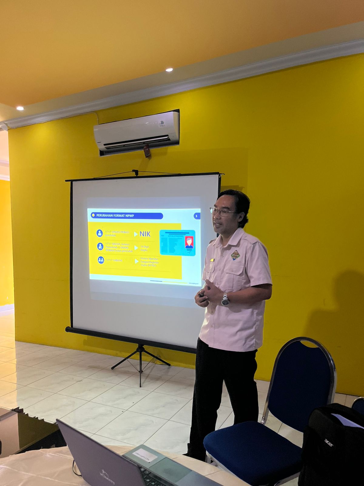 Setelah sesi diskusi, acara ditutup dengan bimbingan teknis pemadanan NIK-NPWP yang didemonstrasikan langsung oleh David Samuel Lahema selaku Pelaksana Seksi Pelayanan.
