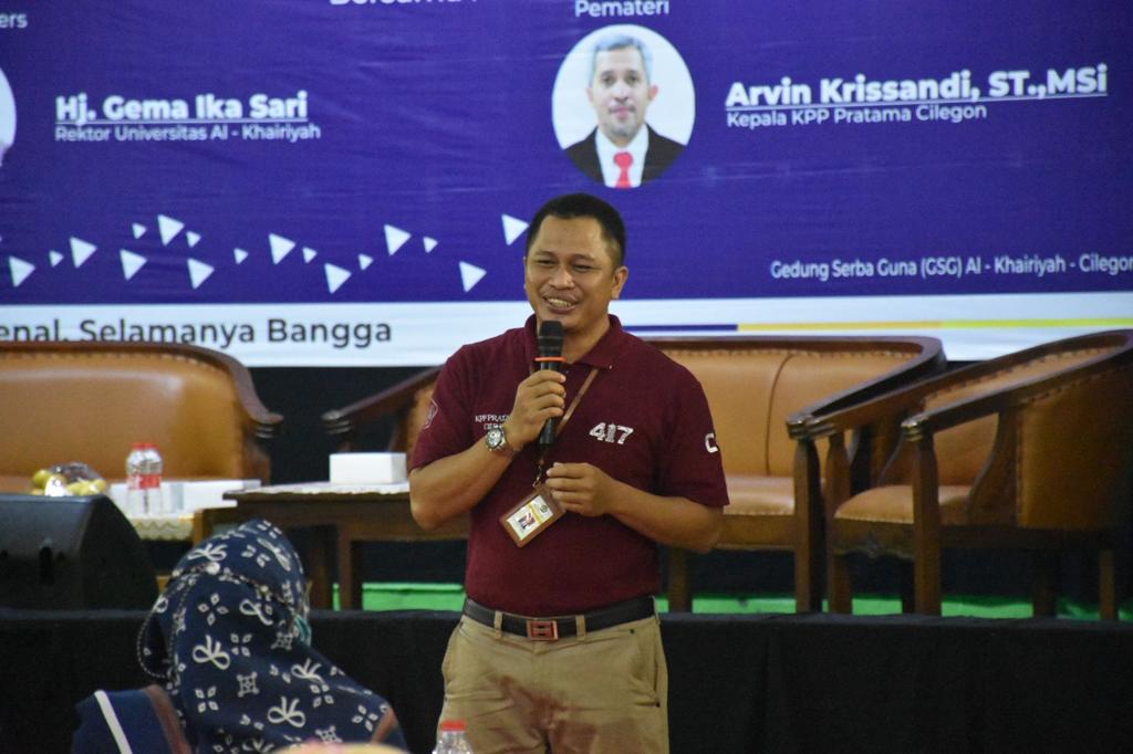 Rektor Universitas Al-Khairiyah Gema Ika Sari dalam sambutannya mengingatkan kepada peserta bahwa mahasiswa Alk-Khairiyah juga merupakan pemuda penerus perjuangan generasi terdahulu yang mewujudkan cita-cita bangsa dengan sadar pajak, karena pajak adalah ujung tombak sumber pembangunan.