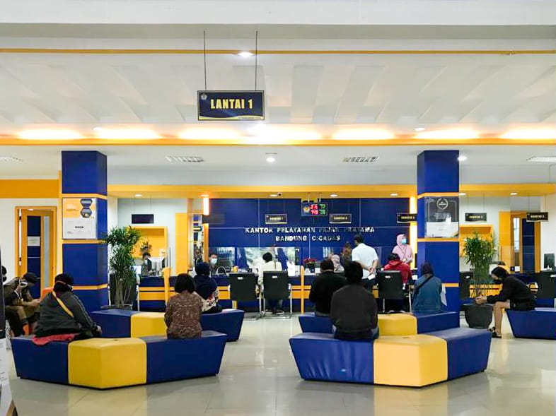 Sebelum datang ke KPP Pratama Bandung Cicadas, para wajib pajak diwajibkan mengambil antrean terlebih dahulu melalui Aplikasi Kunjung Pajak.