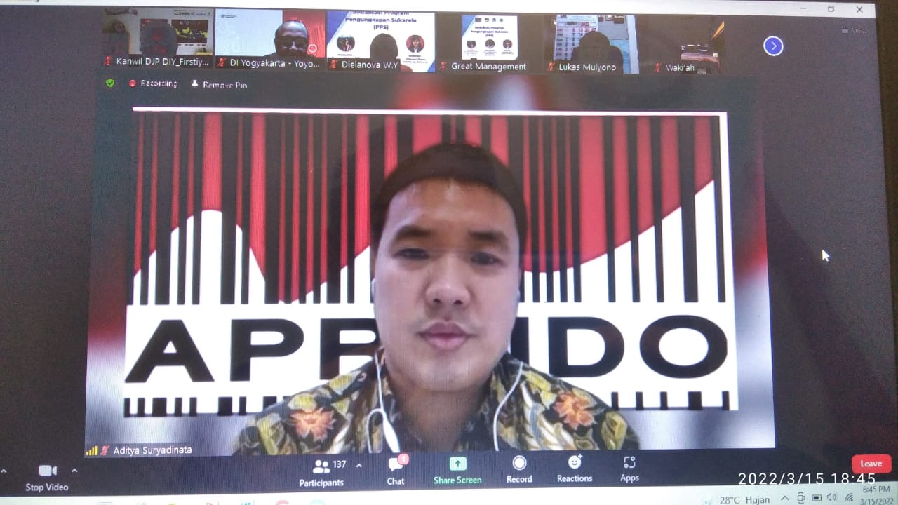 Acara dilaksanakan melalui aplikasi zoommeeting dan dihadiri oleh pengusaha dan wajib pajak di DIY utamanya yang tergabung dalam Asosiasi Perusahaan Retail Indonesia (APRINDO) Yogyakarta.