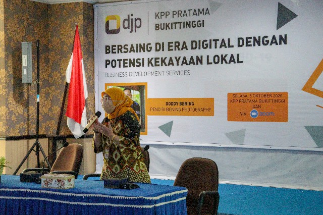 Kantor Pelayanan Pajak (KPP) Pratama Bukittinggi mengadakan Business Development Services (BDS) dengan tema “Bersaing di Era Digital dengan Potensi Kekayaan Lokal” yang dilaksanakan secara virtual di Aula KPP Pratama Bukittinggi (Selasa, 8/10). Acara ini diikuti oleh pelaku UMKM di Kabupaten Agam dan Kota Bukittinggi melalui media Zoom Meeting di tempat masing-masing.