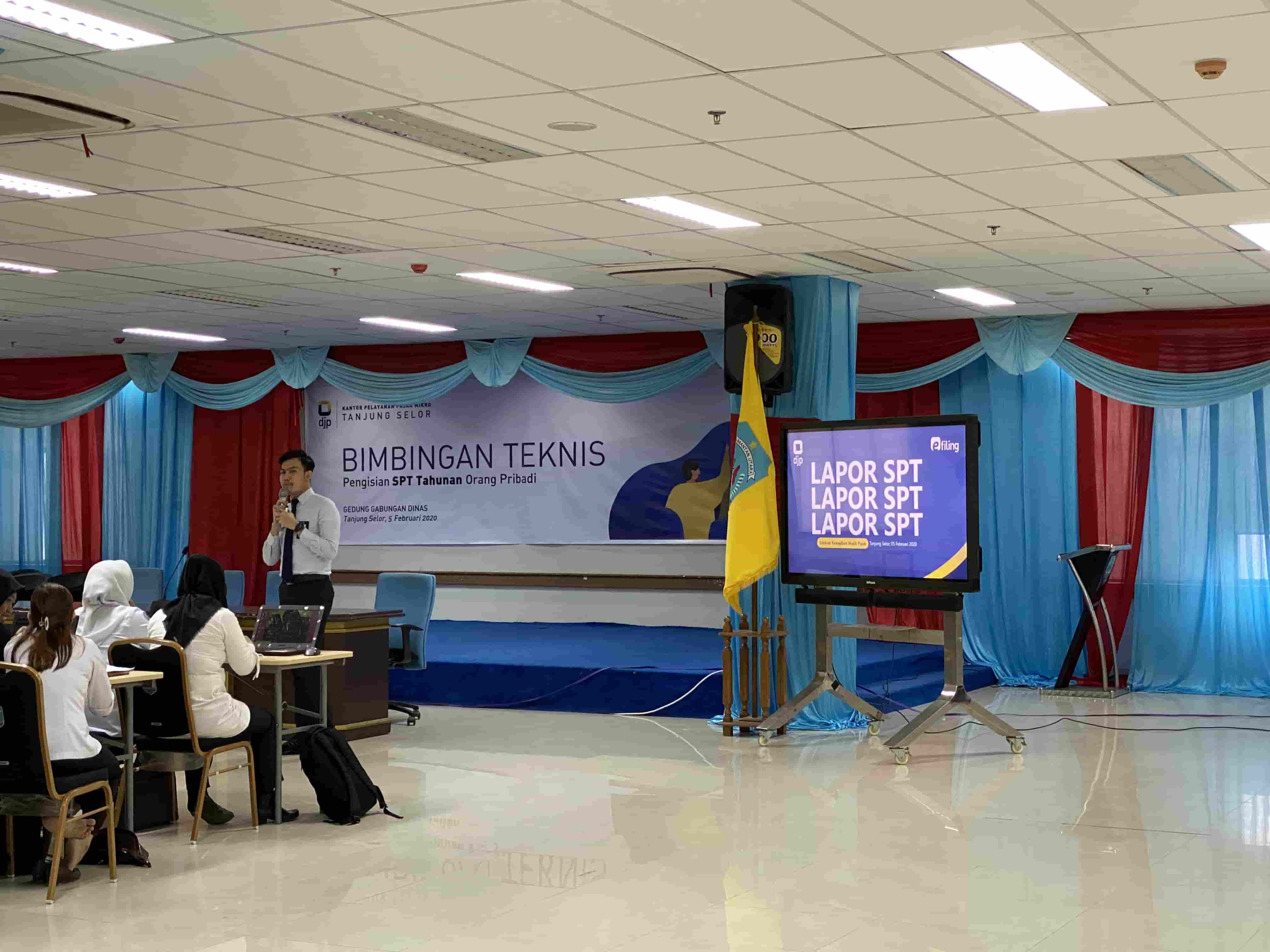 KPP Mikro Tanjung Selor bekerja sama dengan BPKAD Provinsi Kalimantan Utara menyelenggarakan Sosialisasi dan Bimbingan Teknis Edukasi perpajakan SPT Tahunan melalui e-Filling di Gedung Gabungan Dinas (Gadis) Provinsi Kalimantan Utara (Rabu, 5/2). Sosialisasi ini diberikan kepada seluruh bendahara SKPD yang ada di Kalimantan Utara.