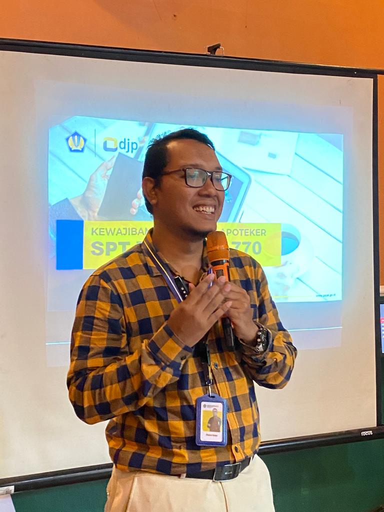 Khairul Azwar selaku Fungsional Penyuluh Pajak memberikan edukasi perpajakan terkait hak dan kewajiban perpajakan Apoteker serta mengajak kepada seluruh peserta yang belum melaksanakan kewajibannya untuk segera melaporkan SPT Tahunannya. Ia juga mengajak para Apoteker untuk segera melakukan pemadanan NIK menjadi NPWP dikarenakan pada tahun 2024, NPWP sudah tidak lagi digunakan melainkan menggunakan Nomor Induk Kependudukan (NIK) sebagai indentitas administrasi perpajakan.