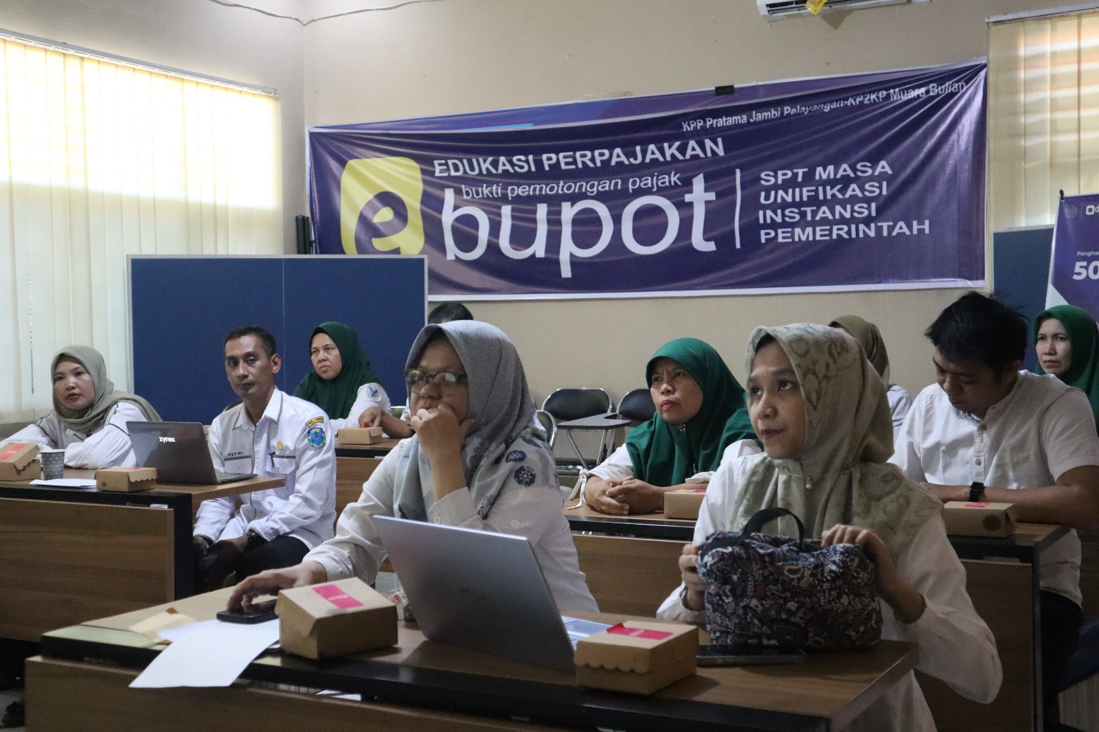 Kegiatan ini bertujuan untuk meningkatkan pemahaman dan kesadaran masyarakat, khususnya para pegawai pemerintah daerah, mengenai peraturan perpajakan yang berlaku, terutama terkait implementasi e-Bupot. Narasumber dari KPP Pratama Jambi Pelayangan terdiri dari M. Dasir, Adi Wijaya, Agung Kurnia Rosdi, dan Andi Viktora yang membagikan pengetahuan mengenai isu-isu terkini dalam perpajakan.