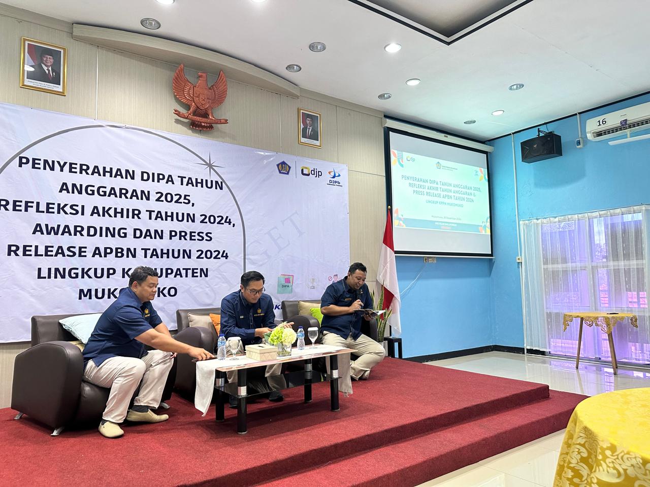 Pada penutup talkshow, KPPN Mukomuko melakukan penyerahan DIPA kepada perwakilan satker vertikal di Kabupaten Mukomuko dan dilanjutkan sesi foto bersama.