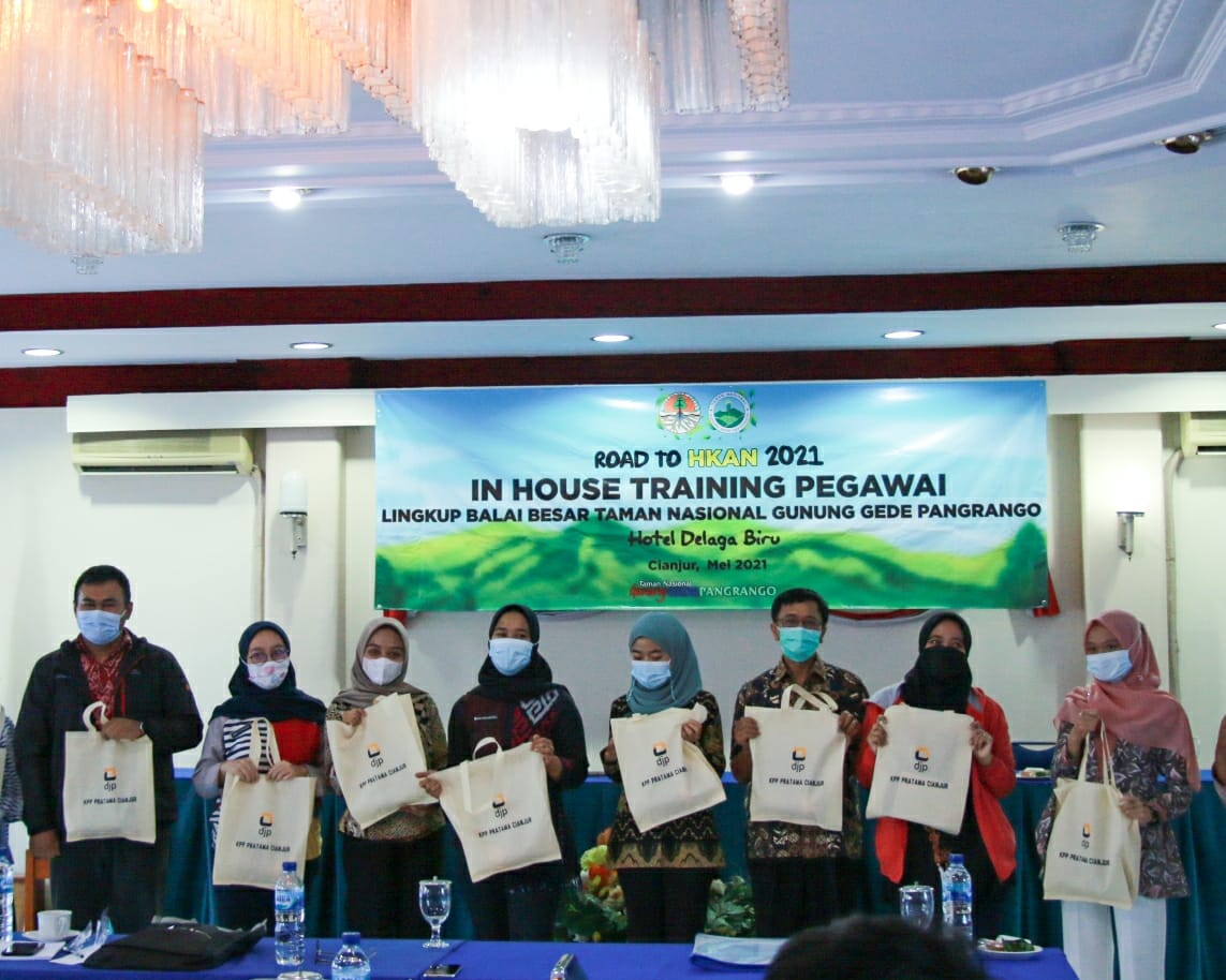 Pegawai Kantor Pelayanan Pajak (KPP) Pratama Cianjur menjadi narasumber dalam acara Pelatihan Griyaan (In House Training) Pengelolaan Administrasi Keuangan Pegawai Lingkup Balai Besar Taman Nasional Gunung Gede Pangrango (TNGGP) yang dilaksanakan di Hotel Delaga Biru, Cipanas, Cianjur,  (Jumat, 28/5).