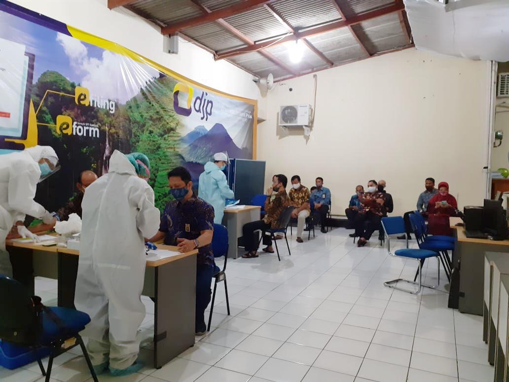 Dalam rangka pencegahan penularan Covid-19, KPP Pratama Temanggung bekerja sama dengan Prodia Temanggung menyelenggarakan rapid test kepada seluruh pegawai. Sebanyak 143 pegawai yang terdiri dari 126 ASN dan 17 Non ASN telah mengikuti rapid test pada 4 dan 5 Agustus 2020.