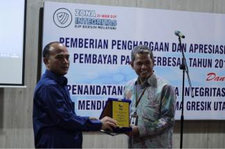 Acara berikutnya, penyerahan penghargaan kepada Direktur perusahaan dengan kontributor pembayaran pajak terbesar tahun 2018 di KPP Pratama Gresik Utara disampaikan oleh Ismail. Kemudian dilanjutkan dengan penandatanganan pakta integritas oleh perwakilan perusahaan sebagai bentuk dukungan penegakan ZI WBK di KPP Pratama Gresik Utara. Acara ditutup dengan foto bersama wajib pajak dengan Kepala Kantor dan Pejabat Eselon IV KPP Pratama Gresik Utara.