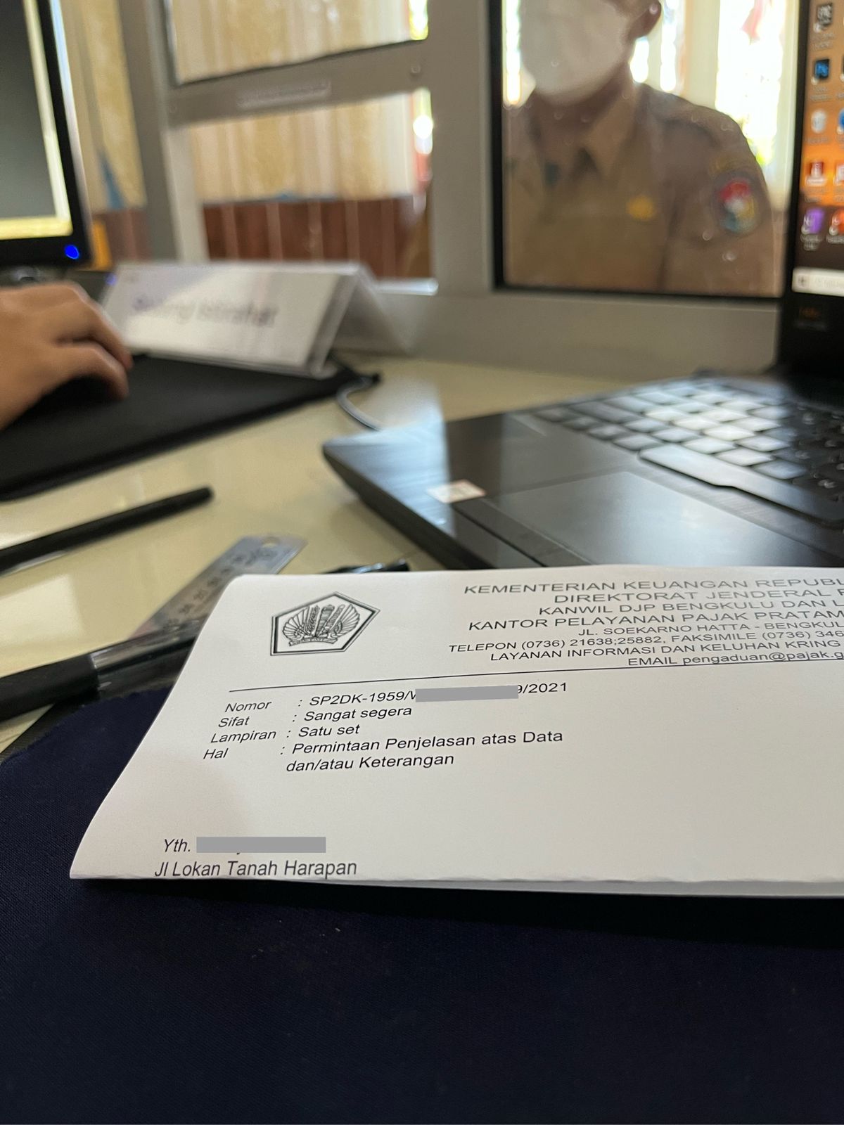 Salah satu wajib pajak orang pribadi di Kabupaten Mukomuko mendatangi KP2KP Mukomuko (Selasa, 19/7) untuk berkonsultasi terkait Surat Permintaan Penjelasan Data dan/atau Keterangan (SP2DK) yang diterimanya.