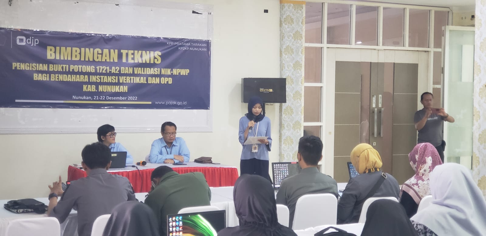 Kantor Pelayanan Penyuluhan dan Konsultasi Perpajakan (KP2KP) Nunukan mengadakan acara edukasi pembuatan e-Bupot 1721 secara tatap muka dengan mengundang segenap operator dan bendaharawan unit instansi vertikal di Kabupaten Nunukan (Rabu, 21/12). Kegiatan ini dilaksanakan dalam rangka memberikan pemahaman juga edukasi dini bagi bendaharawan instansi vertikal menjelang awal tahun perpajakan baru.