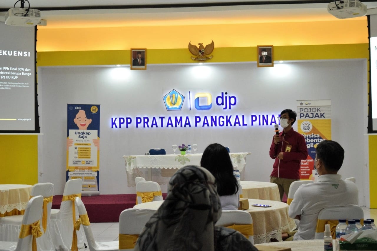 Kantor Pelayanan Pajak (KPP) Pratama Pangkal Pinang mengadakan sosialisasi Program Pengungkapan Sukarela (PPS) di ruang Bukit Menumbing KPP Pratama Pangkal Pinang, Kota Pangka Pinang (Kamis, 9/6).