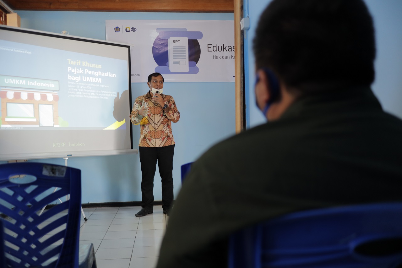 Kantor Pelayanan, Penyuluhan, dan Konsultasi Perpajakan (KP2KP) Tomohon menggelar Edukasi Perpajakan mengenai Hak dan Kewajiban Perpajakan Wajib Pajak UMKM Baru (Selasa, 16/3). Kegiatan ini dilaksanakan di ruang penyuluhan KP2KP Tomohon.
