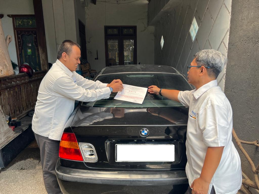 Juru Sita Pajak Negara (JSPN) Kantor Pelayanan Pajak (KPP) Pratama Klaten menyita aset penunggak pajak berupa mobil sedan BMW dengan perkiraan nilai sebesar Rp 80.000.000,00 di Klaten (Senin, 6/11).