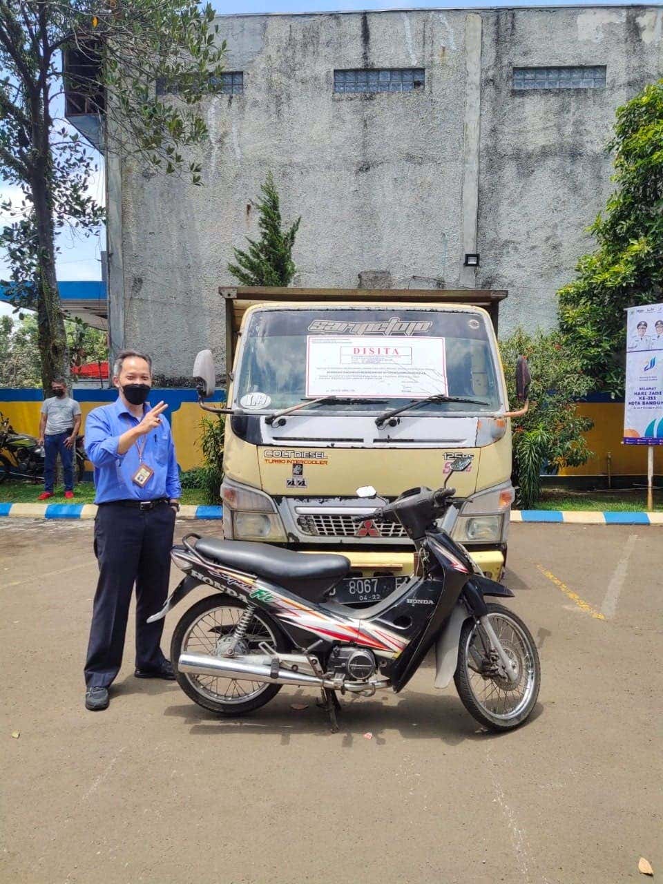 Aset yang disita oleh juru sita berupa satu unit truk merek Mitsubishi tipe Colt Diesel FE 74 S dengan tahun pembuatan 2012 dan satu unit motor merek Honda tipe NF 100 LD dengan tahun pembuatan 2005. Barang sitaan tersebut disimpan di halaman KPP Madya Dua Bandung sebelum dilakukan tindakan berikutnya yaitu lelang.