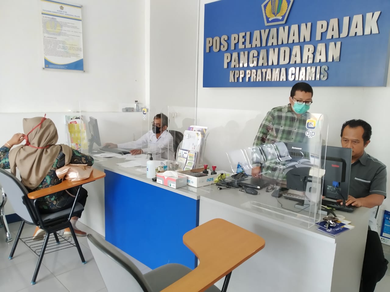 Meskipun begitu, KPP Pratama Ciamis tetap memberlakukan protokol kesehatan secara ketat. Pos Pelayanan Pajak Pangandaran melengkapi fasilitas layanannya dengan tempat cuci tangan, hand sanitizer, serta partisi sesuai standar protokol kesehatan.