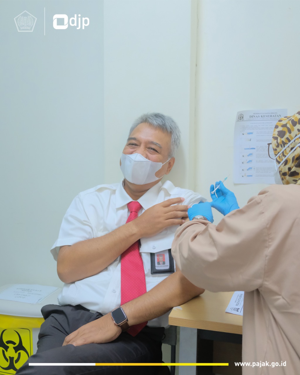 Kepala Kantor Wilayah (Kakanwil) Direktorat Jenderal Pajak (DJP), Kakanwil Direktorat Jenderal Perbendaharaan (DJPb), dan Kakanwil Direktorat Jenderal Kekayaan Negara (DJKN) Banten menerima vaksinasi Covid-19 tahap kedua yang diselenggarakan oleh Dinas Kesehatan Kota Serang di Rumah Sakit Umum Daerah (RSUD) Kota Serang (Senin, 14/3).