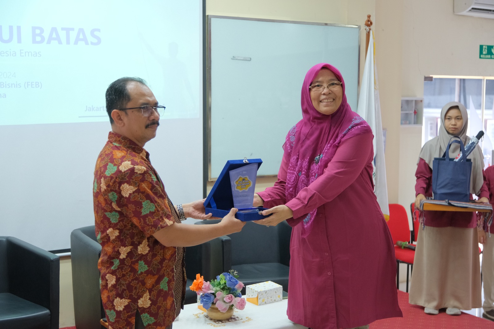 Wakil Dekan Fakultas Ekonomi dan Bisnis Muharsyah menyambut baik kedatangan Tim Penyuluh KPP Pratama Jakarta Kembangan. Muharsyah menyampaikan apresiasi kepada tim penyuluh atas pelaksanaan kegiatan TGTC yang dapat menjadi wadah bagi mahasiswa untuk menambah nilai pengalaman akademis di bidang perpajakan.