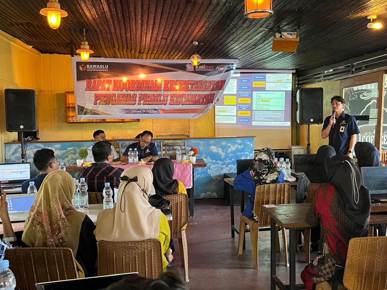 Kantor Pelayanan, Penyuluhan, dan Konsultasi Perpajakan (KP2KP) Sanana berkesempatan menjadi narasumber dalam rapat koordinasi kesekretariatan pengawas pemilu kecamatan yang diselenggarakan oleh Badan Pengawas Pemilihan Umum (Bawaslu) Kabupaten Kepulauan Sula (Rabu, 24/7). Kegiatan dilaksanakan di Waibak Coffee, Desa Man-Gega, Kecamatan Sanana Utara, Kabupaten Kepulauan Sula.