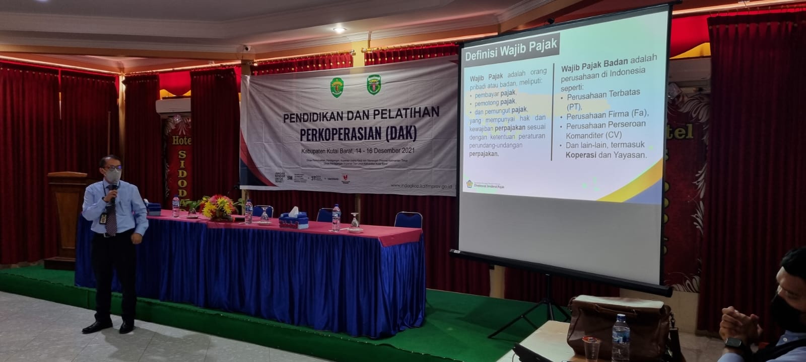 Kantor Pajak Sendawar menghadiri undangan dari Dinas Perindustrian, Perdagangan, Koperasi, Usaha Kecil dan Menengah Provinsi Kalimantan Timur sebagai narasumber dalam program Pemberdayaan dan Perlindungan Koperasi Tahun Anggaran 2021. Acara tersebut diselenggarakan secara tatap muka di Aula Hotel Sidodadi, Kabupaten Kutai Barat (Rabu, 16/12).