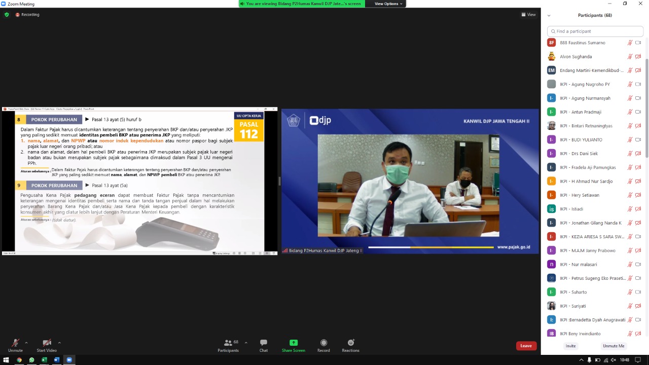 Tiga fungsional penyuluh pajak Timon Pieter, Wieka Wintari dan Surono secara bergantian menyampaikan materi Undang-undang nomor 11 Tahun 2020 tentang Cipta Kerja.