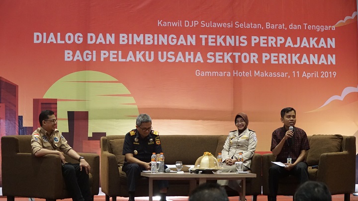 Kanwil DJP Sulawesi Selatan, Barat, dan Tenggara (Sulselbartra) menggelar sosialisasi perpajakan bertajuk Dialog dan Bimbingan Teknis Perpajakan Bagi Pelaku Usaha Sektor Perikanan (Kamis, 11/4). Acara ini diadakan di Aula Eboni Gammara Hotel Makassar dengan mengundang wajib pajak pelaku usaha sektor perikanan di wilayah Sulawesi Selatan dan sekitarnya sebagai peserta.