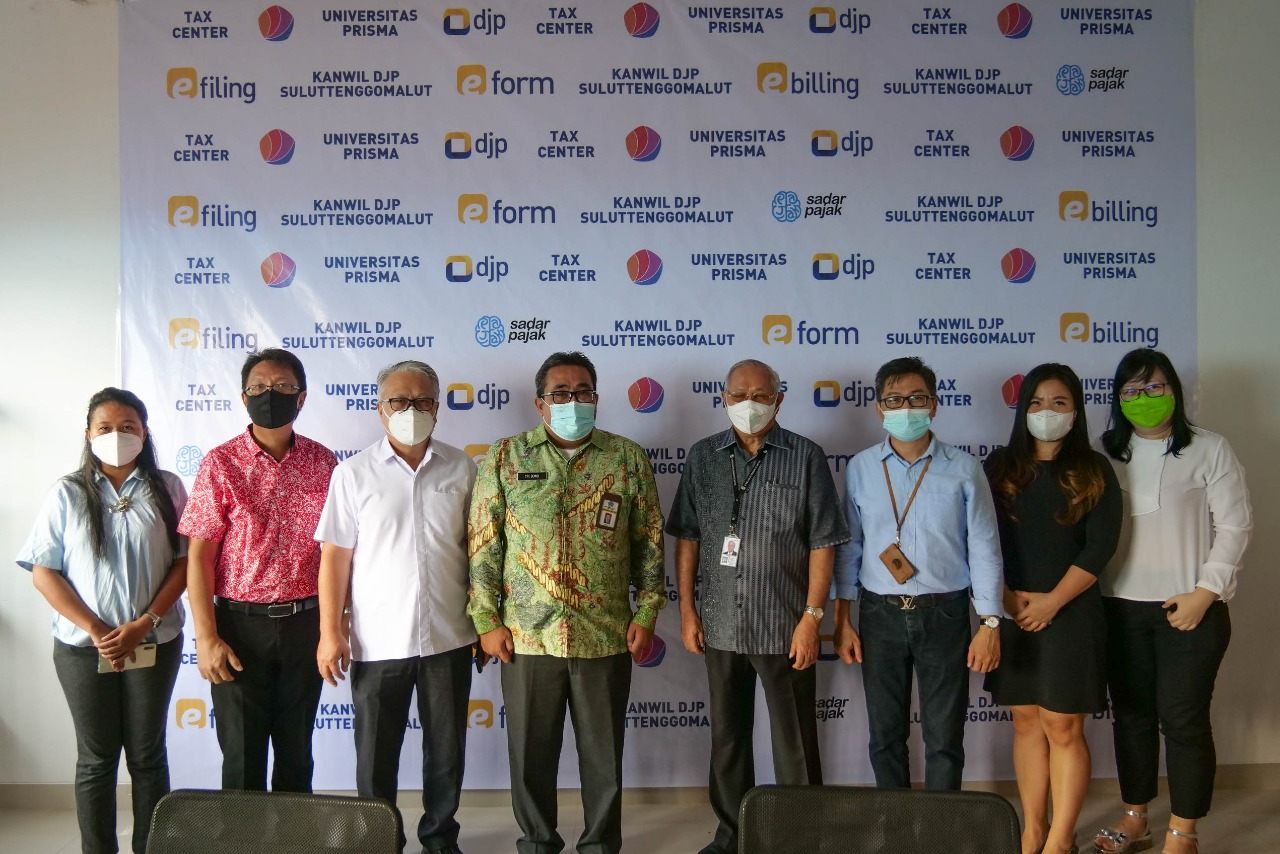 Kantor Wilayah Direktorat Jenderal Pajak Sulawesi Utara, Tengah, Gorontalo dan Maluku Utara (Kanwil DJP Suluttenggomalut) bersama dengan Universitas Prisma Manado melaksanakan penandatanganan Kesepakatan Bersama Pembentukan Tax Center sekaligus peresmian Tax Center Universitas Prisma Manado. Kegiatan dilaksanakan di Kampus Universitas Prisma Manado (Rabu, 18/11).