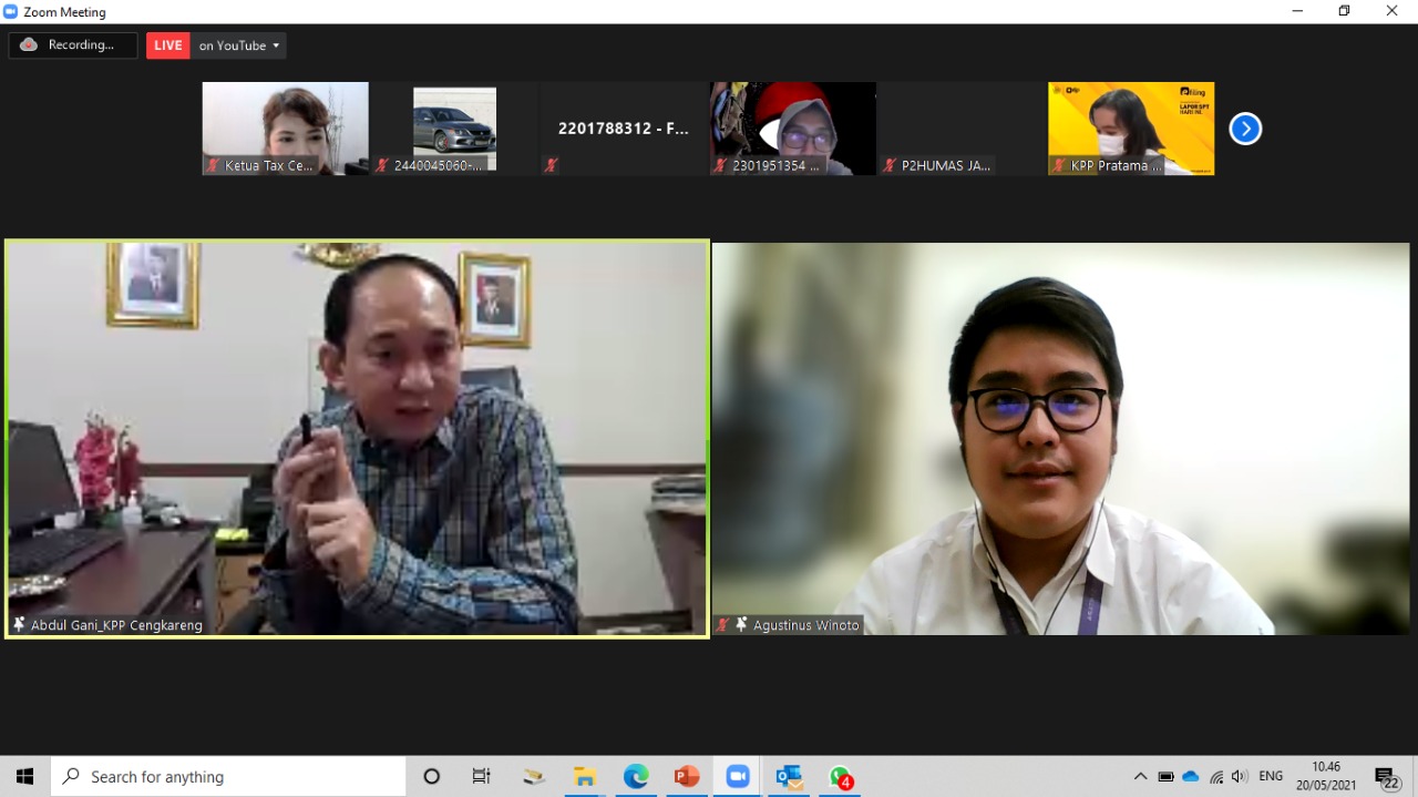 Kanwil DJP Jakarta Barat mengisi Kegiatan "Binus Festival" bekerja sama dengan Tax Center Universitas Bina Nusantara (Binus) dalam acara seminar perpajakan bertema “Pajak Bagi Melenial” (Kamis, 20/5). Kegiatan ini dilangsungkan secara daring via Zoom Meeting di ruang rapat Kanwil DJP Jakarta Barat, DKI Jakarta.