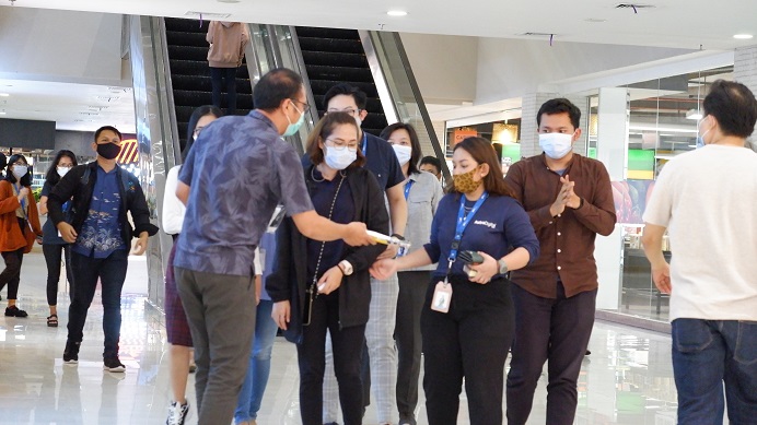 Kegiatan dilaksanakan pada pukul 12.00 s.d. 13.30 WIB saat Mall dipadati pengunjung yang datang untuk makan siang. Meskipun padat pengunjung, kegiatan dilakukan dengan mematuhi protokol kesehatan.
