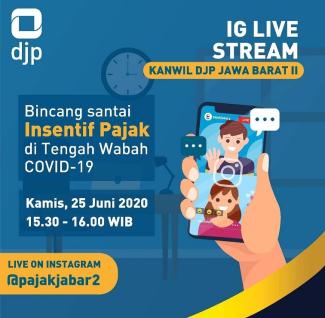 Kanwil DJP Jawa Barat II kembali mengadakan kelas pajak tentang Insentif Pajak di Tengah Wabah Covid-19 melalui fitur live Instagram yang dilangsungkan di Kanwil DJP Jawa Barat II, di Kota Bekasi (Kamis, 25/6). Amelia Rosita Asnel dan Alfin Julian, Pelaksana di Bidang P2Humas Kanwil Jawa Barat II bertindak sebagai narasumber dalam kelas pajak kali ini.