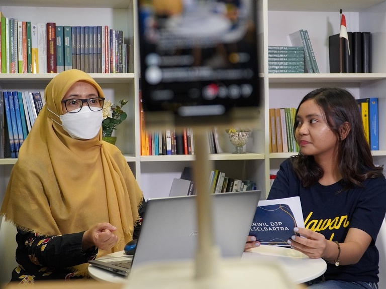 Kantor Wilayah Direktorat Jenderal Pajak (Kanwil DJP) Sulawesi Selatan, Barat, dan Tenggara (Sulselbartra) menyelenggarakan sosialisasi daring melalui Instagram Live dengan mengangkat tema seputar Program Pengungkapan Sukarela (PPS) Kebijakan Dua di ruang studio Kanwil DJP Sulselbartra, Kota Makassar (Jumat, 17/6). Penyuluh Pajak Kanwil DJP Sulselbartra Sitti Aisyah dibantu Vinsky Sandeana selaku Relawan Pajak Kanwil DJP Sulselbartra sebagai moderator memandu jalannya acara langsung dari ruang studio Kanwil DJP Sulselbartra, Kota Makassar.