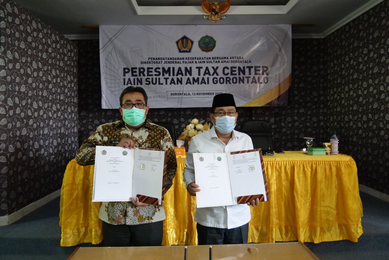 Kantor Wilayah Direktorat Jenderal Pajak Sulawesi Utara, Tengah, Gorontalo dan Maluku Utara (Kanwil DJP Suluttenggomalut) bersama dengan Institut Agama Islam Negeri (IAIN) Sultan Amai Gorontalo melaksanakan penandatanganan Kesepakatan Bersama Pembentukan Tax Center sekaligus Peresmian Tax Center IAIN Sultan Amai Gorontalo. Kegiatan dilaksanakan di Gedung Rektorat IAIN Sultan Amai Gorontalo (Jumat, 13/11).