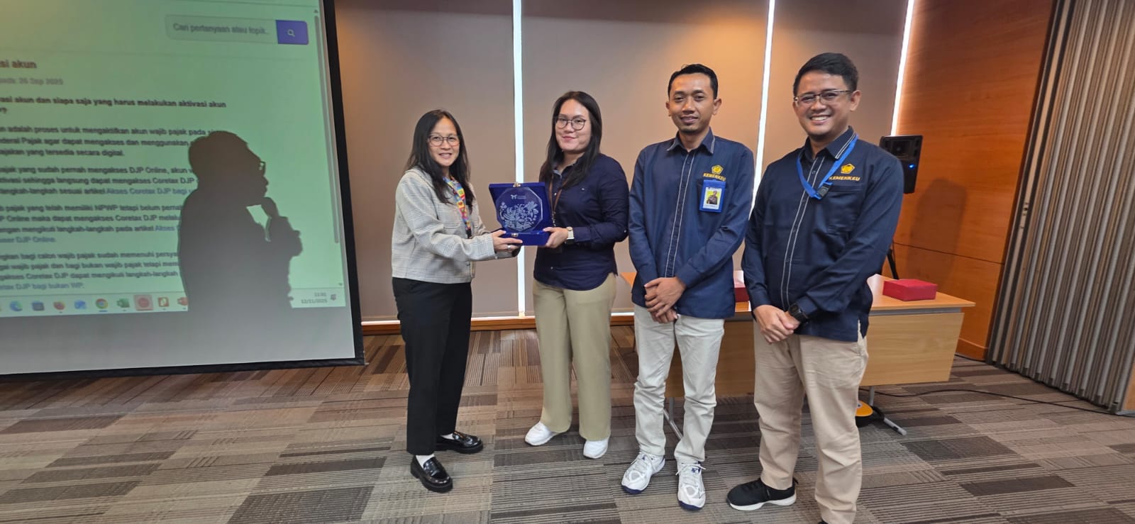 Acara dimulai dengan pemaparan oleh Ester Ro Uli Siahaan, penyuluh pajak, yang menjelaskan proses registrasi dan login pada sistem Coretax DJP sebagai langkah paling awal. Ester menekankan pentingnya memastikan padanan NIK dan NPWP, serta memastikan alamat email dan nomor ponsel sesuai dengan data DJP.