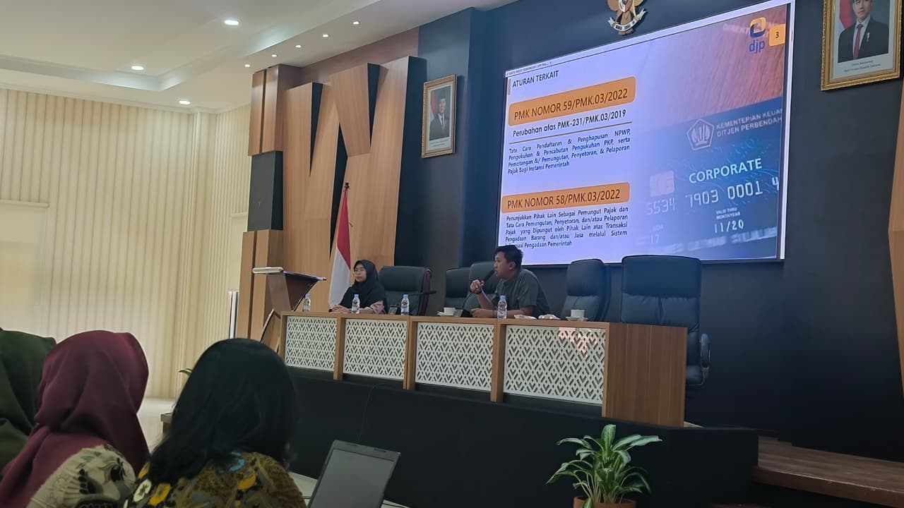 Dari KPP Pratama Surakarta, hadir dua penyuluh andal, Raras Supriyaningtiyas dan Andre Setiawan, membawakan materi perpajakan terkait Kartu Kredit Indonesia. Andre menjelaskan, sesuai Peraturan Menteri Keuangan Nomor 59/PMK.03/2022 tentang Tata Cara Pendaftaran dan Penghapusan NPWP, Pengukuhan dan Pencabutan Pengukuhan PKP, serta Pemotongan dan/atau Pemungutan, Penyetoran, dan Pelaporan Pajak bagi Instansi Pemerintah, ada ketentuan khusus yang perlu dicermati oleh instansi pemerintah.