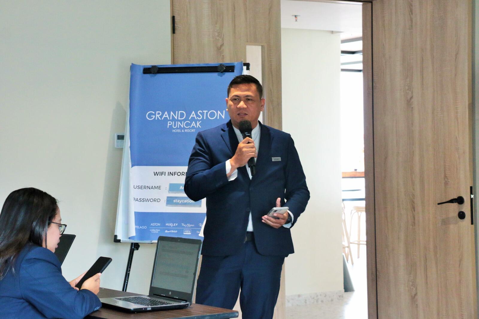 Human Resource (HR) Manager Grand Aston Puncak Hotel & Resort Marthin Agung Prabowo menyambut kedatangan tim dan menyampaikan terima kasih atas terselenggaranya kegiatan ini.