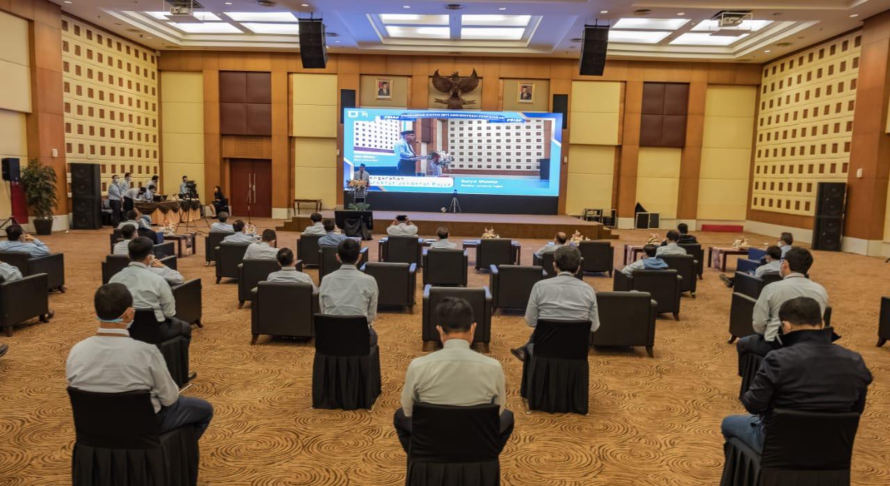 Direktur Jenderal Pajak Suryo Utomo menyampaikan arahan kepada Tim Pelaksana Pembaruan Sistem Inti Administrasi Perpajakan (PSIAP) di Aula Cakti Buddhi Bakti, Lantai 2 Gedung Mari'e Muhammad, Kantor Pusat Direktorat Jenderal Pajak (DJP), Jakarta (Kamis, 4/11).