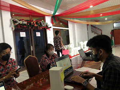 Petugas pojok pajak yang terdiri dari Account Representative dan Pelaksana KPP Pratama Bitung yang dibantu juga dengan relawan pajak tampak tanpa lelah memberikan bantuan asistensi pelaporan SPT Tahunan kepada wajib pajak yang mendatangi mereka.