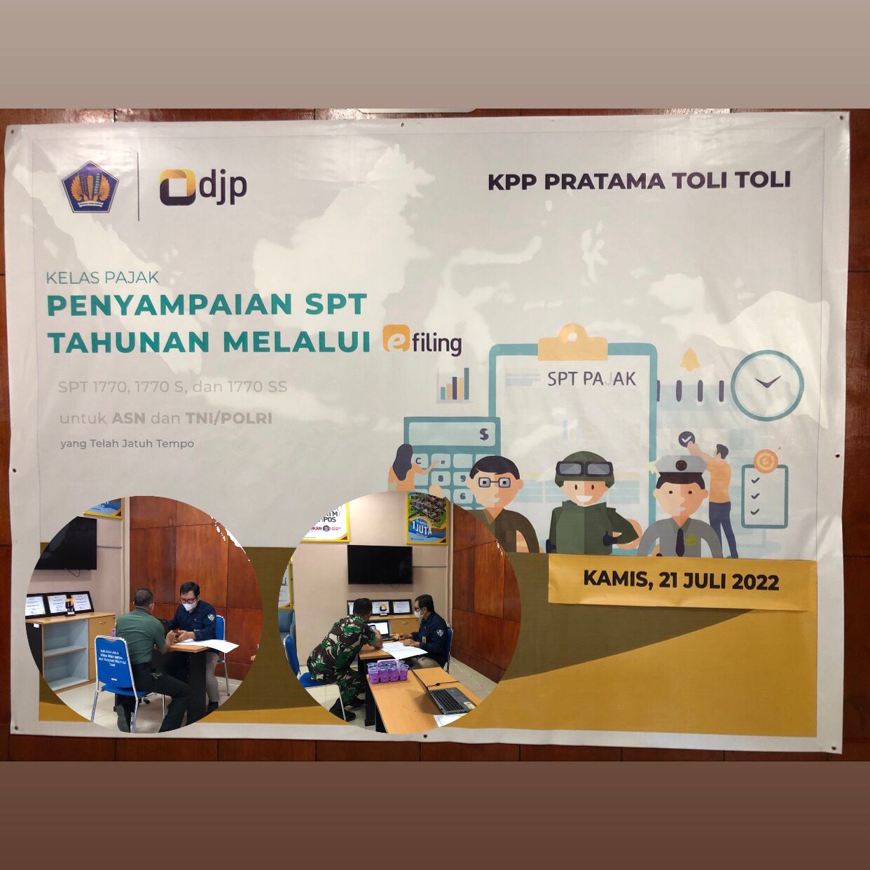 Kantor Pelayanan Pajak (KPP) Pratama Tolitoli mengadakan kegiatan kelas pajak terkait kewajiban pelaporan Surat Pemberitahuan (SPT) Tahunan Pajak Penghasilan (PPh) Wajib Pajak Orang Pribadi bertempat di Ruang Bersama Lantai 1 KPP Pratama Tolitoli, Kabupaten Tolitoli (Kamis, 21/7).