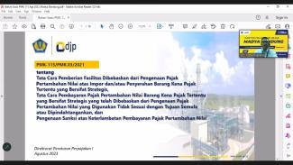 Tim Penyuluh Kantor Pelayanan Pajak (KPP) Madya Bandung menggelar kegiatan penyuluhan one to many dalam bentuk kelas pajak secara daring melalui Zoom Cloud Meeting di Gedung Keuangan Negara Kota Bandung (Rabu, 23/8). Kelas pajak diikuti oleh 175 (seratus tujuh puluh lima) peserta yang merupakan Wajib Pajak Badan yang terdaftar sebagai Pengusaha Kena Pajak.