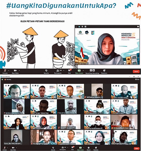 Pada kegiatan yang dilaksanakan secara sukarela oleh pegawai Kementerian Keuangan (Kemenkeu) ini, hadir Kepala Biro Komunikasi dan Layanan Informasi (KLI) Sekretariat Jenderal Kementerian Keuangan Rahayu Puspasari, yang sekaligus menjadi narasumber pada kegiatan bersama SMA Negeri 3 Semarang ini.