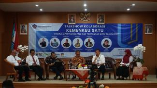 Perwakilan Kementerian Keuangan (Kemenkeu) Jawa Barat menggelar Talkshow Kolaborasi Kemenkeu Satu di Aula Soekarno Kantor Wilayah Direktorat Jenderal Perbendaharaan (Kanwil DJPB) Jawa Barat, Jalan Diponegoro Nomor 59, Bandung (Senin, 30/1).